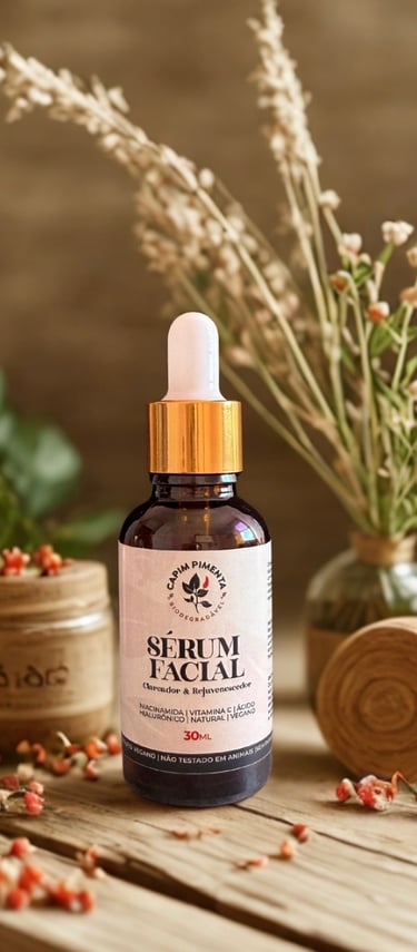 Na fórmula da Capim Pimenta, você encontra um blend exclusivo de extratos naturais, livres de químicos agressivos, desenvolvido para cuidar da sua pele com carinho e ciência.