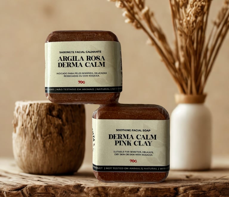 Sabonete Facial de Argila Rosa (Pele Sensível, Rosácea, Hidratante)