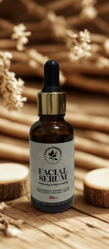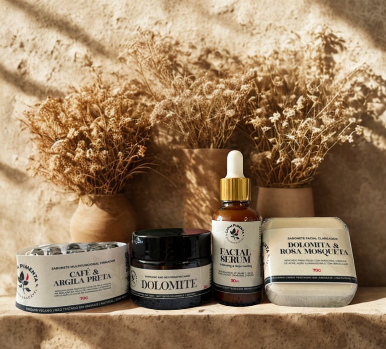 Sun spots, melasma, acne marks. We know how much these imperfections can affect your self-esteem. Therefore, Capim Pimenta has developed a complete treatment, 100% natural and free of aggressive chemicals, formulated by a team of chemists and pharmacists to offer effective whitening without rebound effect. Our Anti-Stain Trio combines science and nature to transform the health of your skin. With dolomite, rosehip and niacinamide, this trio stimulates cell renewal, reduces hyperpigmentation and brings a progressive and safe whitening. Unlike conventional whiteners, our formula respects the balance of the skin, promoting real results without harming your health.